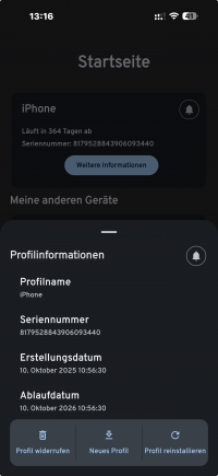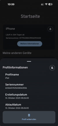 Über die Schaltflächen der einzelnen Profile unter „Meine anderen Geräte“ lassen sich Profile, die sich auf anderen Geräten befinden, widerrufen.