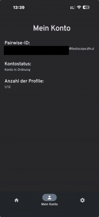 Im Menüpunkt „Mein Konto“ können Nutzende ihr DFN-AAI-Pseudonym für easyroam einsehen, die Anzahl der generierten Profile sowie die Anzahl der noch generierbaren Profile. Der Status zeigt an, ob der Zugang zu easyroam für den Nutzer noch gültig ist.