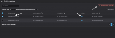 In der „Profilverwaltung“ ist es möglich, gezielt nach der Seriennummer eines Profils zu suchen und dieses zu widerrufen.
