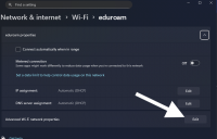2. Im eduroam Eigenschaftsfenster mit Linbksklick „Editiren/Edit“ auswählen.